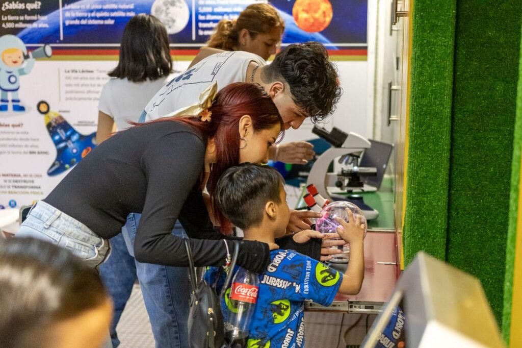 Explicó que entre las actividades más destacadas se incluyeron la exhibición de equipos tecnológicos e insectos, el uso de microscopios, dinámicas de “lotería de insectos” y “lotería microbiana”, rompecabezas, lectura de cuentos y la observación de la Luna a través de un telescopio, promoviendo el aprendizaje de manera lúdica y accesible para todas las edades.