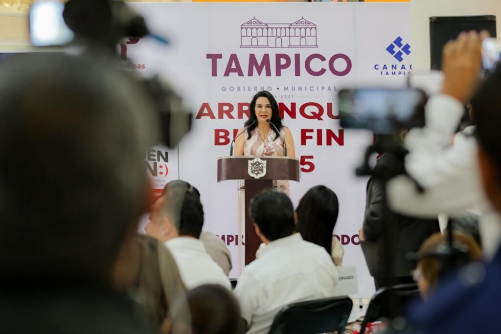 Durante la ceremonia realizada en la Plaza Comercial Tres Arcos, la alcaldesa porteña, destacó que Tampico vive un momento de estabilidad, crecimiento y seguridad lo que permite que la ciudadanía y el sector empresarial participen con confianza en esta edición del Buen Fin.