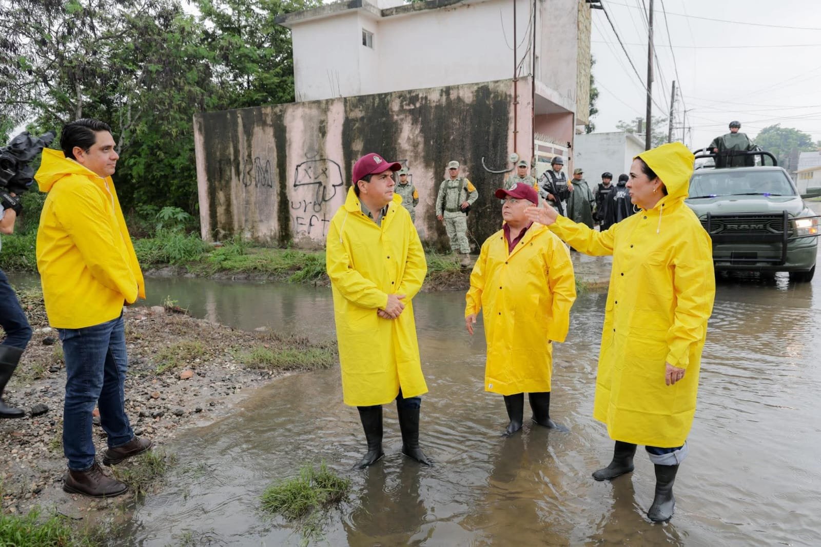 Al recorrido se sumaron autoridades estatales y federales, en un esfuerzo conjunto enmarcado dentro del Plan DN-III-E, activado por las constantes lluvias de este fin de semana.
