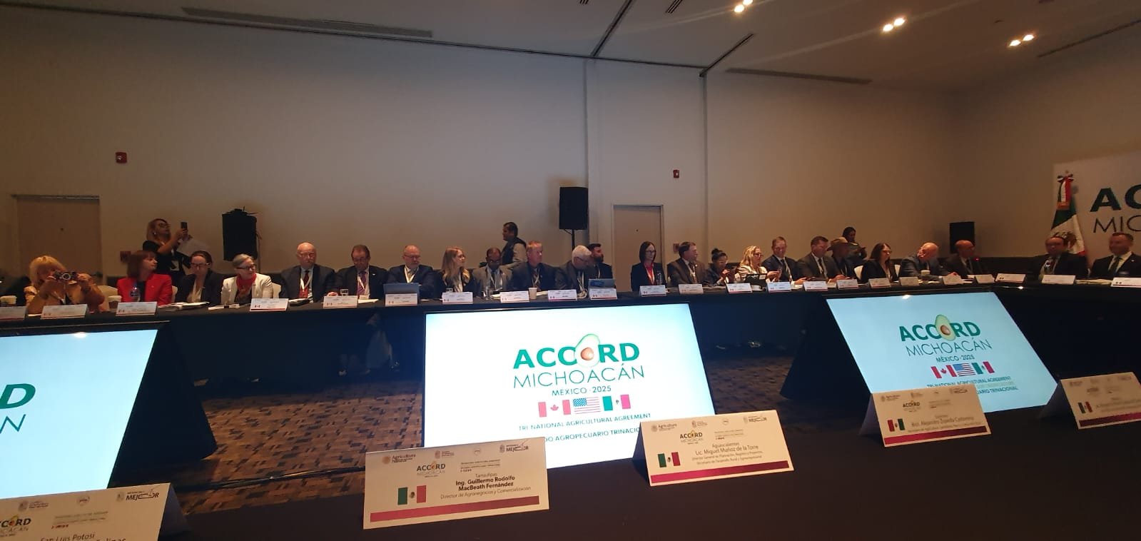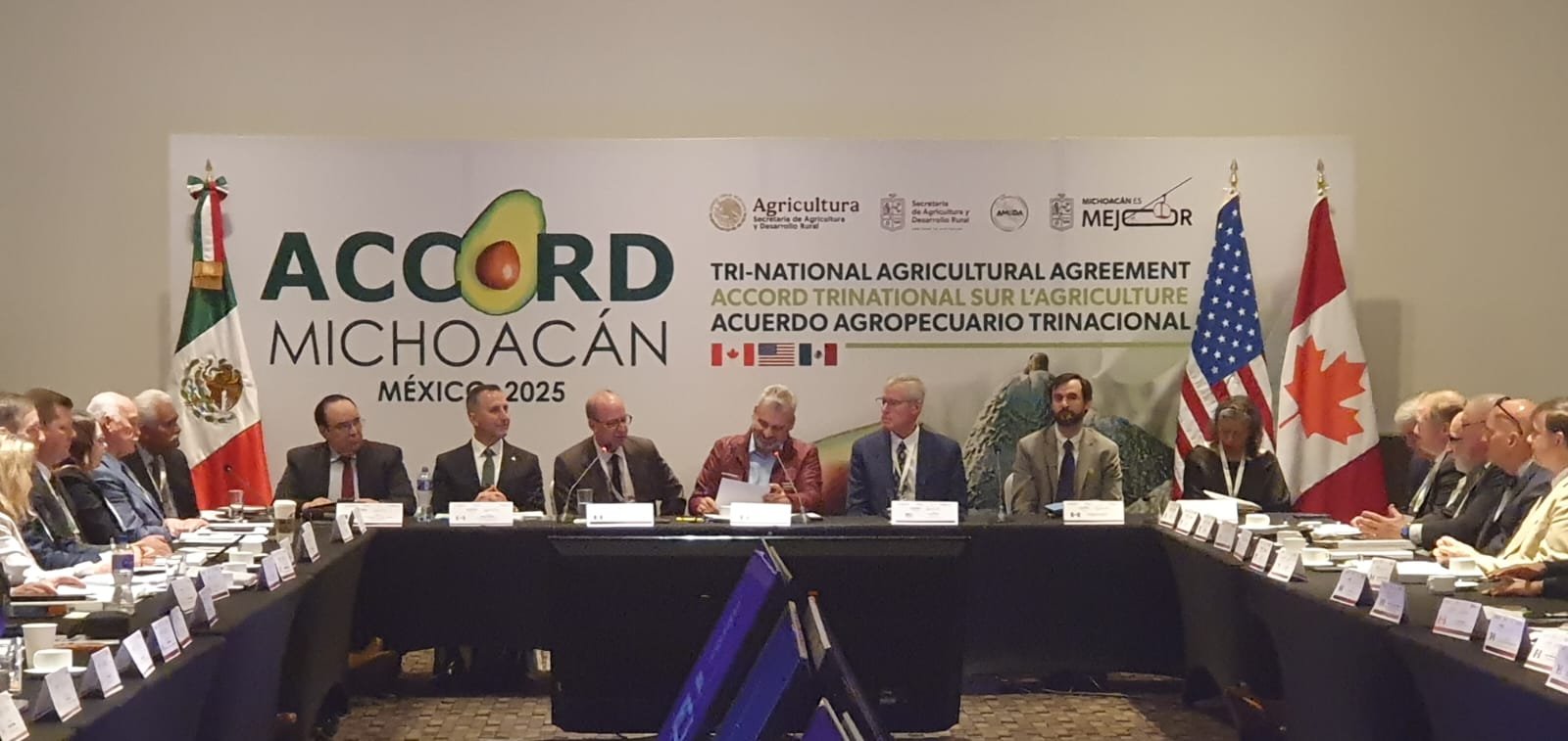Octubre 18 de 2025, Morelia, Michoacán. – Con el propósito de crear un espacio permanente de diálogo entre los responsables de las políticas públicas del sector agropecuario en México, Estados Unidos y Canadá, se llevó a cabo el Acuerdo Agropecuario Trinacional 2025 (ACCORD) en la ciudad de Morelia, Michoacán.