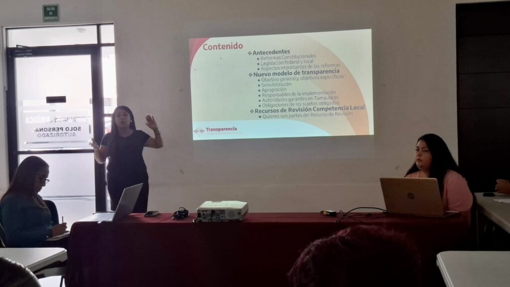 Durante el encuentro con más de 25 personas servidoras públicas, se presentó el nuevo modelo de transparencia por parte del equipo de Transparencia para el Pueblo de Tamaulipas (TPT), subrayando que el trabajo colaborativo entre las autoridades garantes es necesario para cumplir con las atribuciones establecidas en la legislación vigente. En ese sentido, se generó un espacio para promover el reconocimiento mutuo y la integración operativa entre las distintas instancias responsables de garantizar los derechos de transparencia y el acceso a la información pública.