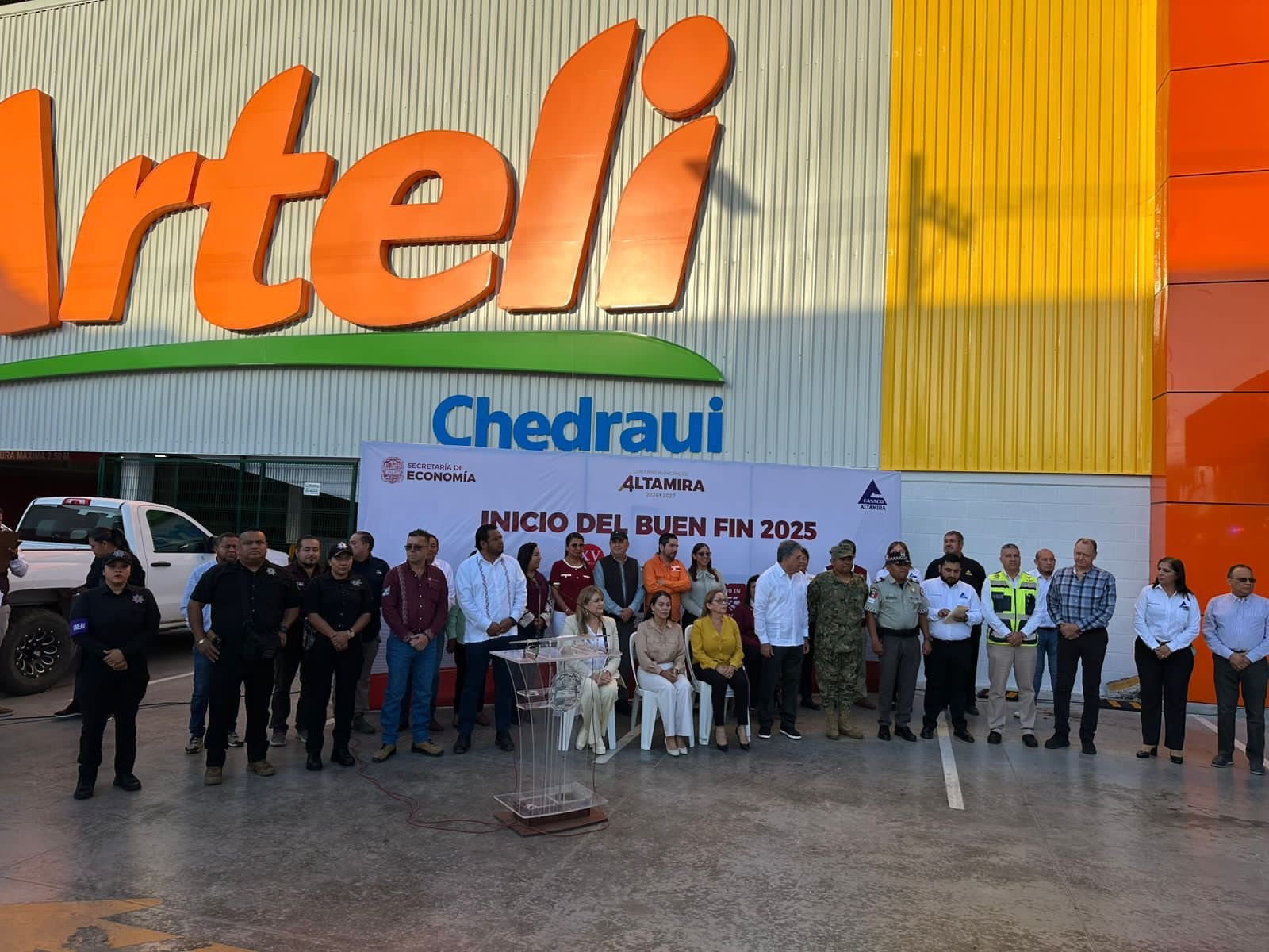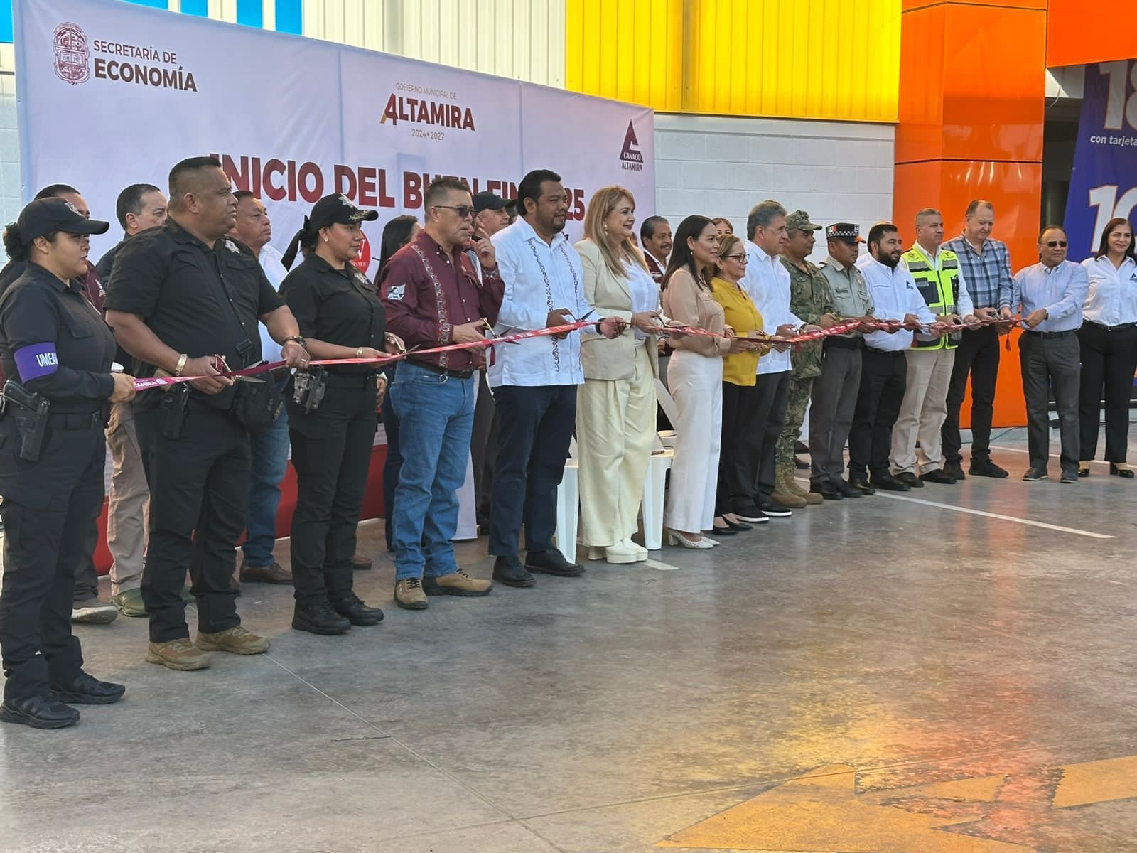 Altamira, Tamaulipas.-En conjunto con instituciones de los tres niveles de gobierno y representantes de la sociedad civil organizada, personal de la   participó en el banderazo de arranque de la edición 2025 de El Buen Fin.