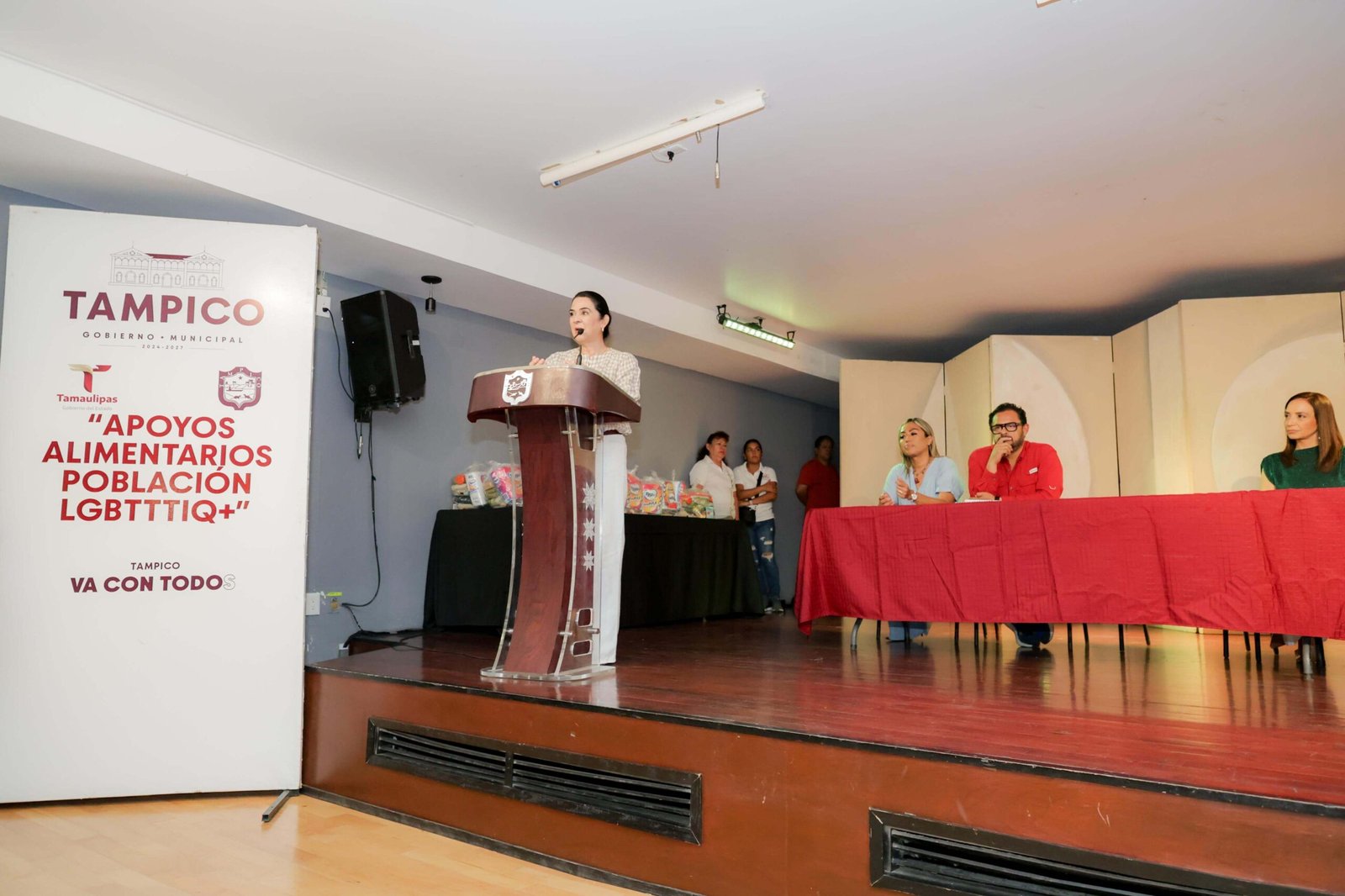 Reafirmando su compromiso con los sectores de la población, especialmente aquellos en situación de vulnerabilidad, la Presidenta Municipal de Tampico, Mónica Villarreal Anaya, encabezó este martes la entrega de apoyos alimentarios a integrantes de la comunidad LGBTTTIQ+.