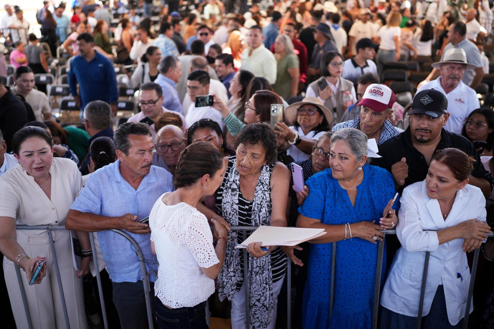 La Jefa del Poder Ejecutivo anunció diferentes acciones del Gobierno de México para Baja California Sur, entre las que destacó la construcción de la Presa El Novillo para mejorar el abastecimiento de agua potable; la compra de autobuses para el nuevo sistema de transporte público; y la rehabilitación de la carretera Transpeninsular, también llamada Benito Juárez García.