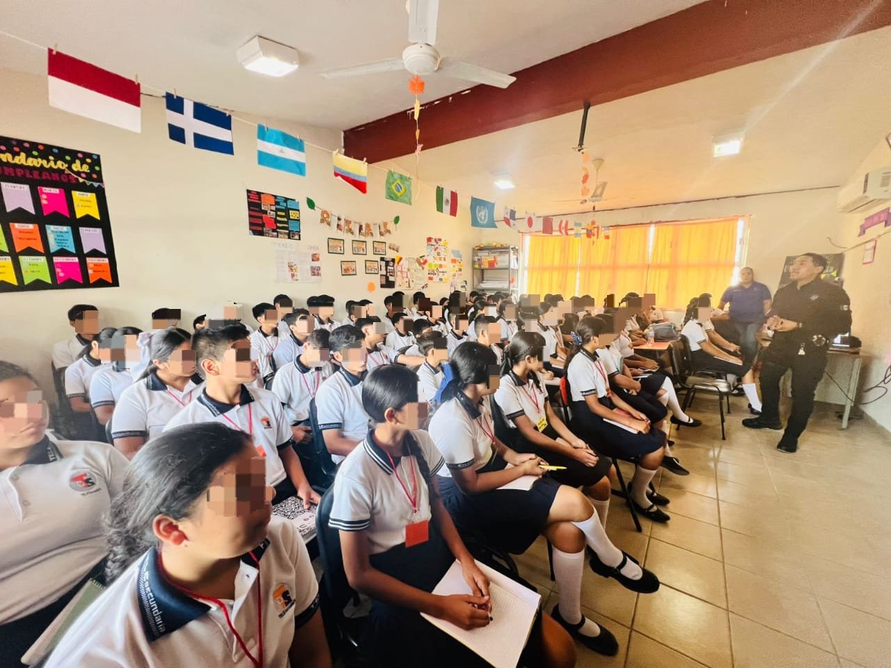 En ambas escuelas, los agentes promovieron el uso adecuado de los números de emergencia 911 y 089, destacando la importancia de la denuncia oportuna y el apoyo institucional disponible para los jóvenes.