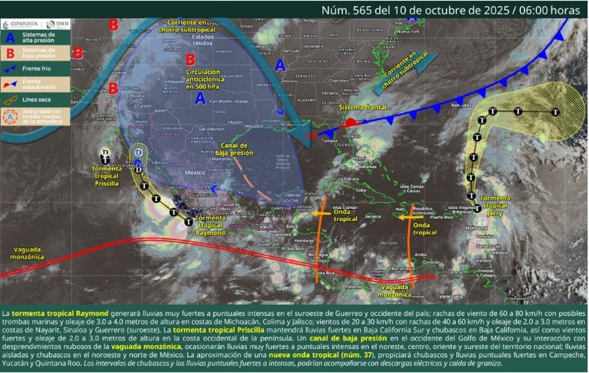 Octubre 10 de 2025, Ciudad Victoria, Tamaulipas.– La Coordinación Estatal de Protección Civil informa a la ciudadanía, sobre la presencia y continuidad de lluvias de moderadas a fuertes que se registran durante este día en diversas regiones del estado, derivadas del ingreso de humedad del Golfo de México y una zona de inestabilidad atmosférica.