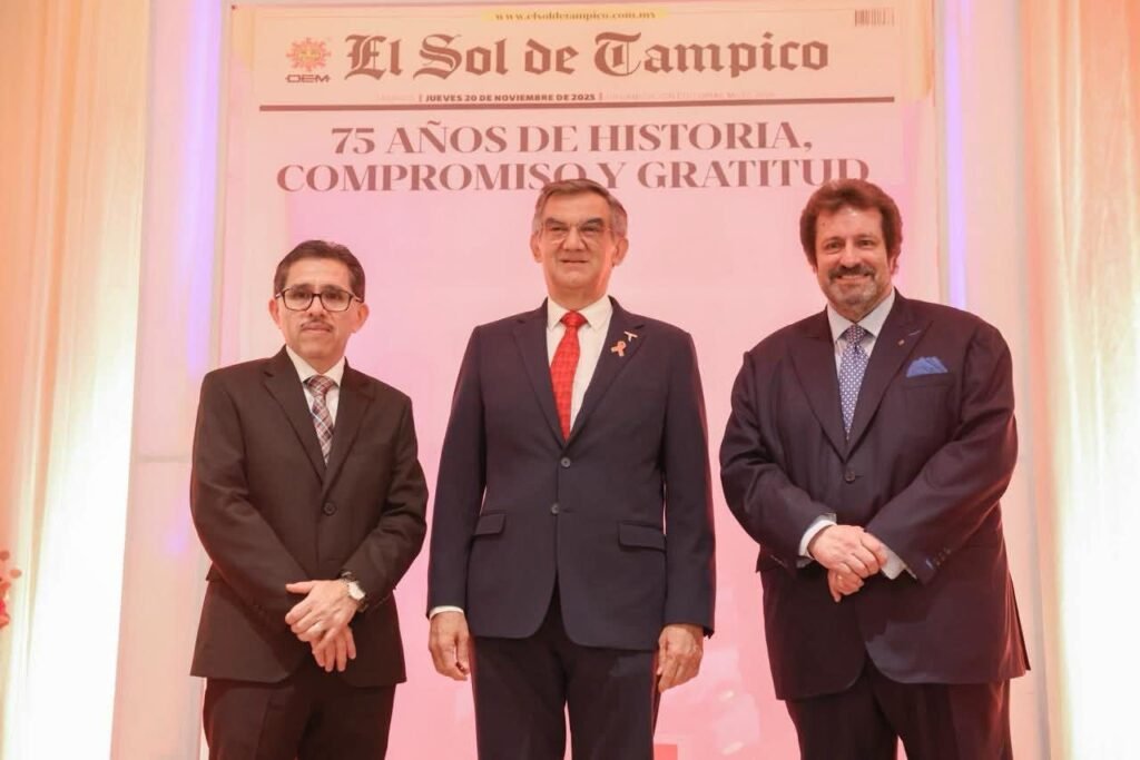 “Hoy tuve el honor de acompañar la celebración por los 75 años de El Sol de Tampico, un medio que ha construido una trayectoria ejemplar con profesionalismo, valores y un profundo compromiso con la verdad”, expresó durante su intervención.