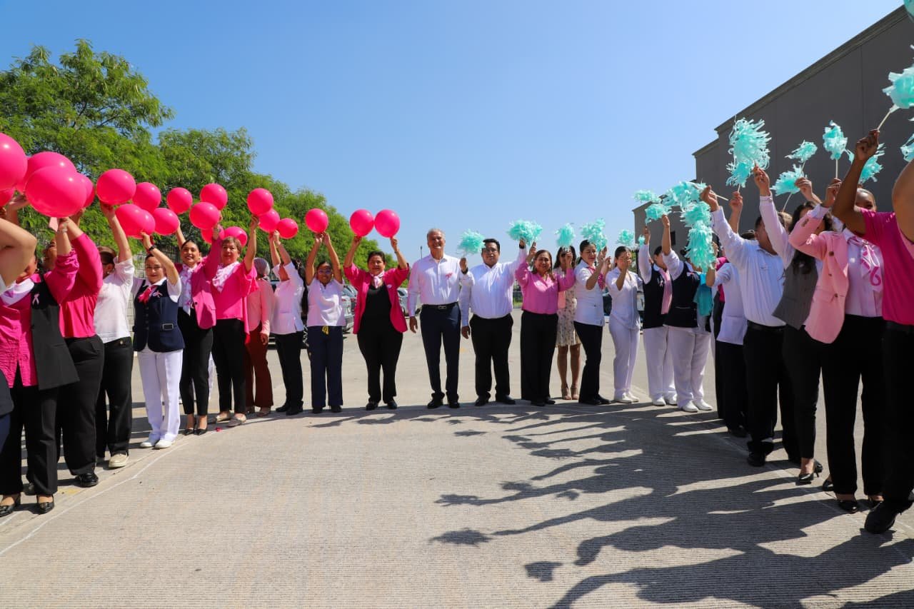 El evento, que se llevó a cabo en las instalaciones del Instituto de Ciencias y Estudios Superiores de Tamaulipas (ICEST), se organizó el tradicional lazo humano que representa la conmemoración de la lucha contra el cáncer de mama, y se contó con la asistencia de la directora del plantel, Edna Hinojosa Rubio; la directora de Desarrollo Sectorial de Enfermería, Patricia Rivera Vázquez; así como personal de enfermería de las dependencias del sector Salud.