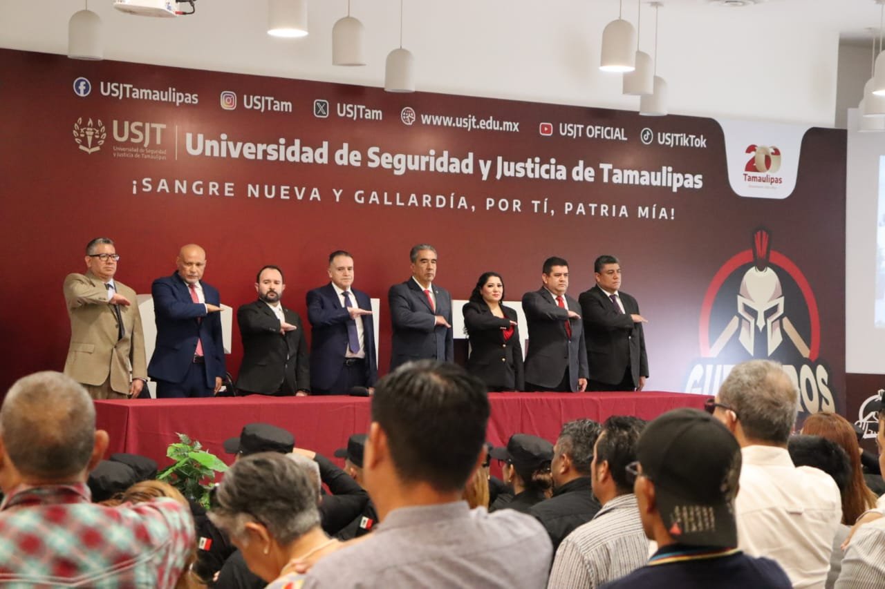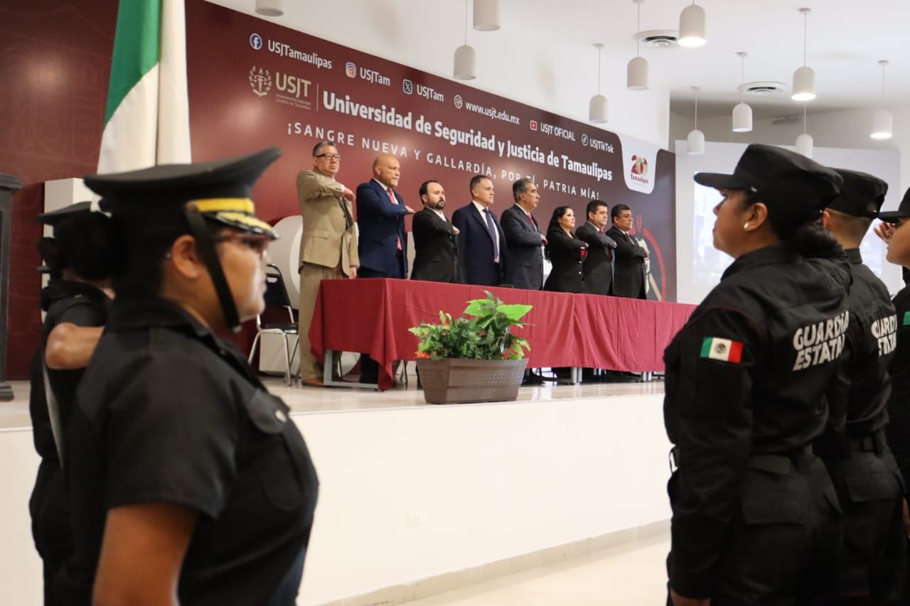 “El que hoy concluyan su formación inicial 48 cadetes, es parte de ese gran compromiso con la seguridad, la transformación de la seguridad pública en Tamaulipas, parte de adecuada formación de las personas responsables de hacer cumplir la Ley, tanto del conocimiento de las normas, las técnicas policiales y, sobre todo, de su responsabilidad dentro del Sistema Penal”, manifestó el subsecretario.