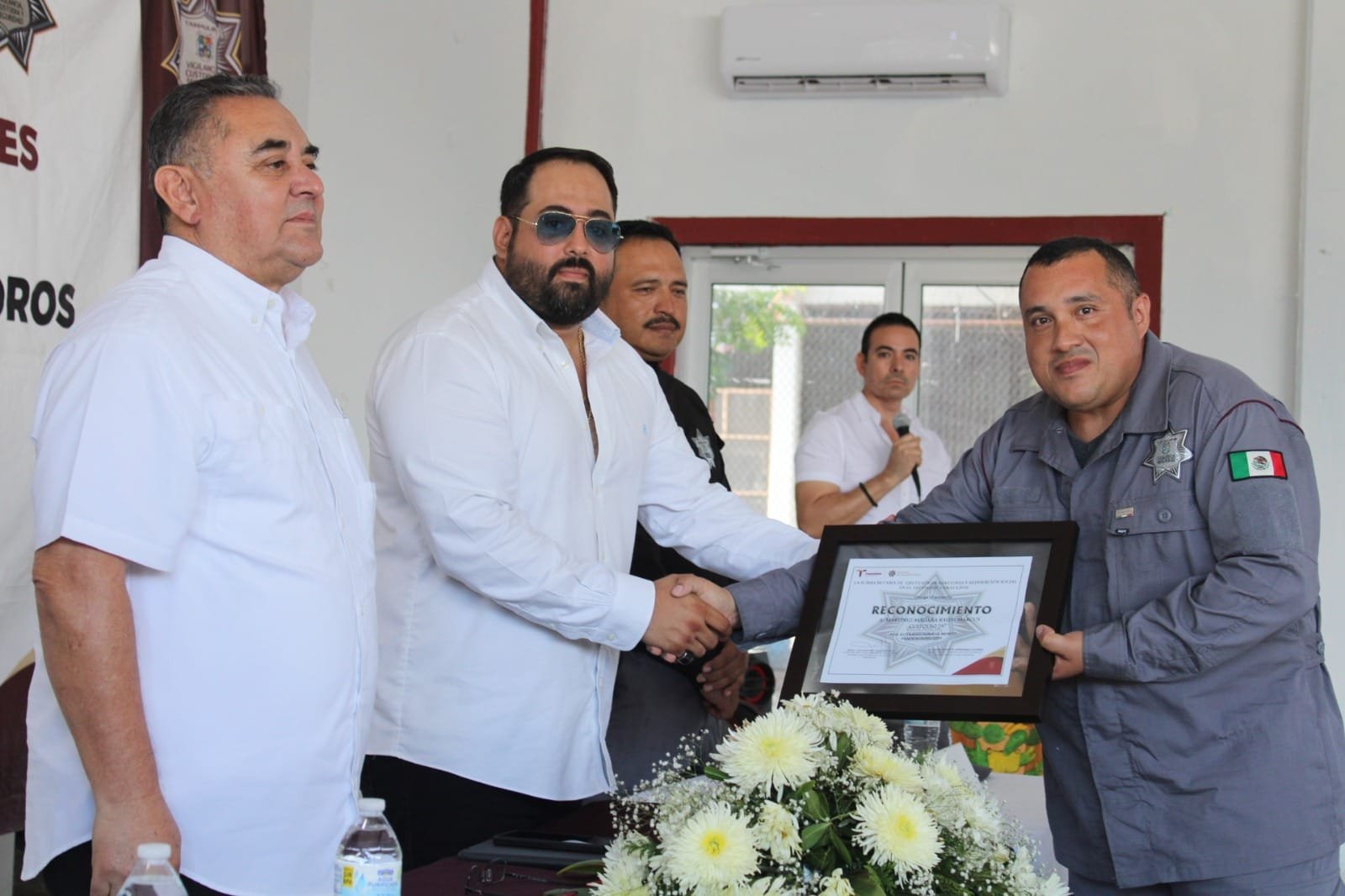 Adicional a la premiación por parte de la Secretaría de Seguridad y Protección Ciudadana, la SSPT entregó reconocimientos a sus elementos seleccionados en una ceremonia celebrada en el CEDES Matamoros que contó con la presencia del subsecretario de Ejecución de Sanciones y Reinserción Social, Juan Antonio Sánchez Ruiz, así como la participación de la Banda de Guerra y Escolta integrada por PPLs.