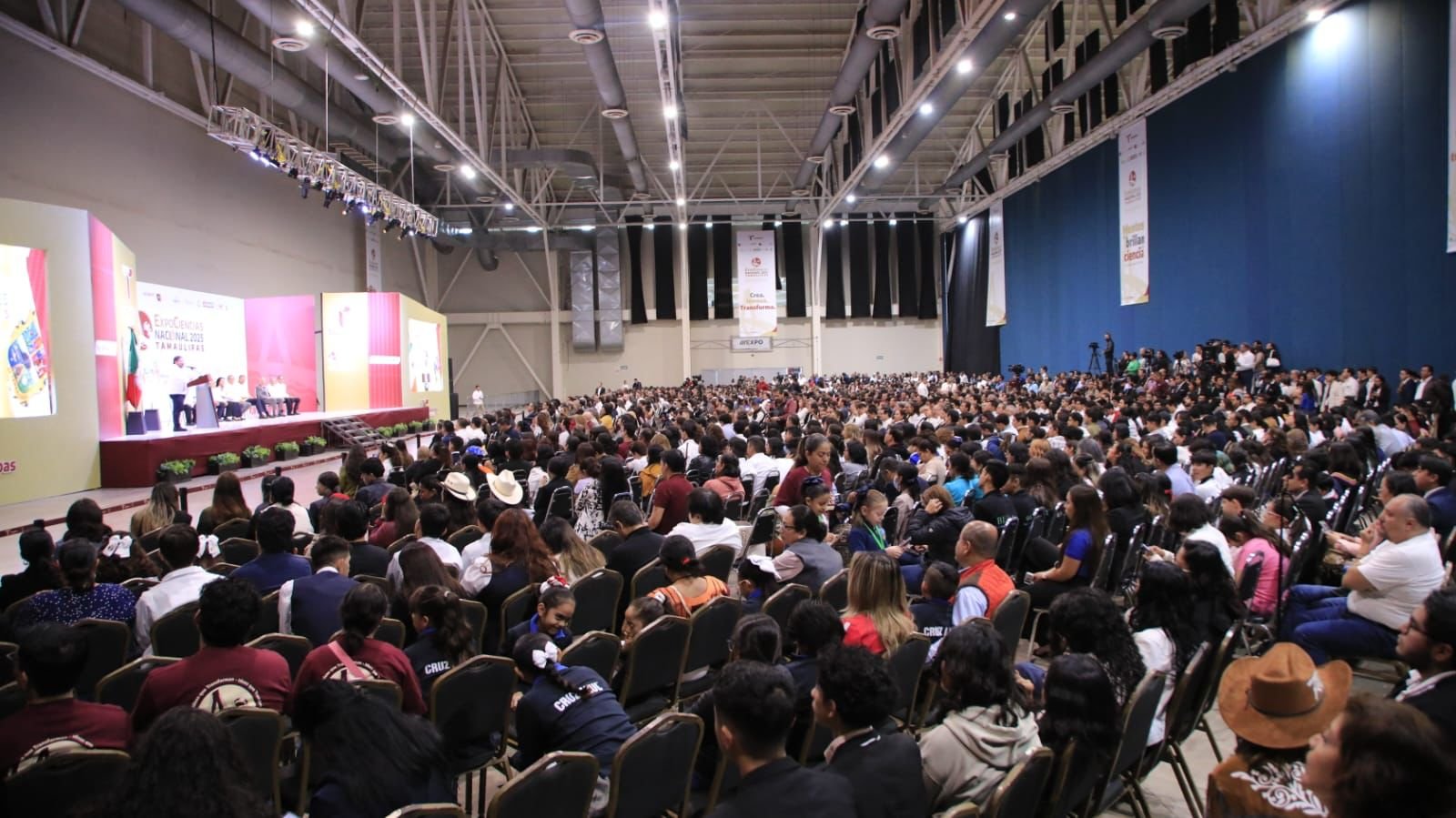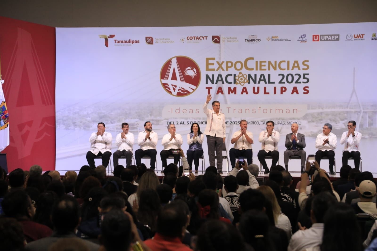 Tampico, Tamaulipas.- Al inaugurar la ExpoCiencias Nacional Tamaulipas 2025, un encuentro que reúne a 1500 participantes con los 500 mejores proyectos de ciencia, innovación y tecnología, elaborados por niños, niñas y jóvenes, el gobernador Américo Villarreal Anaya refrendó todo su apoyo para seguir con la visión de la presidenta Claudia Sheinbaum y poner el conocimiento y el avance científico a favor del bienestar social.