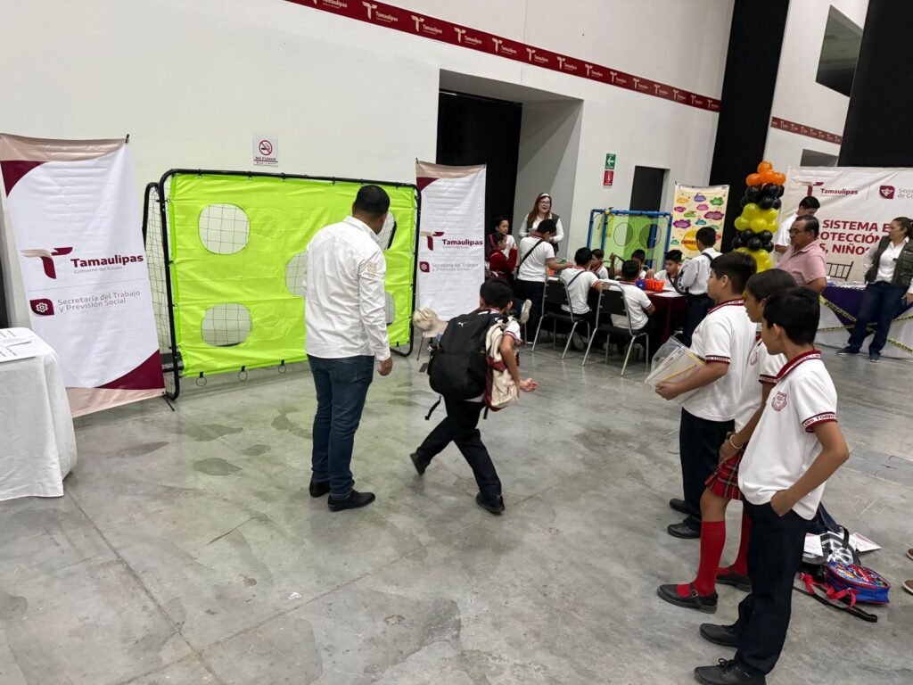 Noviembre 27 de 2025, Ciudad Victoria, Tamaulipas.- La Secretaría del Trabajo y Previsión Social participó en la Feria de los Derechos de las Niñas, Niños y Adolescentes 2025, organizada por el DIF Tamaulipas en el Polyforum de Ciudad Victoria, donde cientos de estudiantes de primaria recibieron información clave sobre la prevención del trabajo infantil y la protección de los derechos laborales de adolescentes en edad permitida.