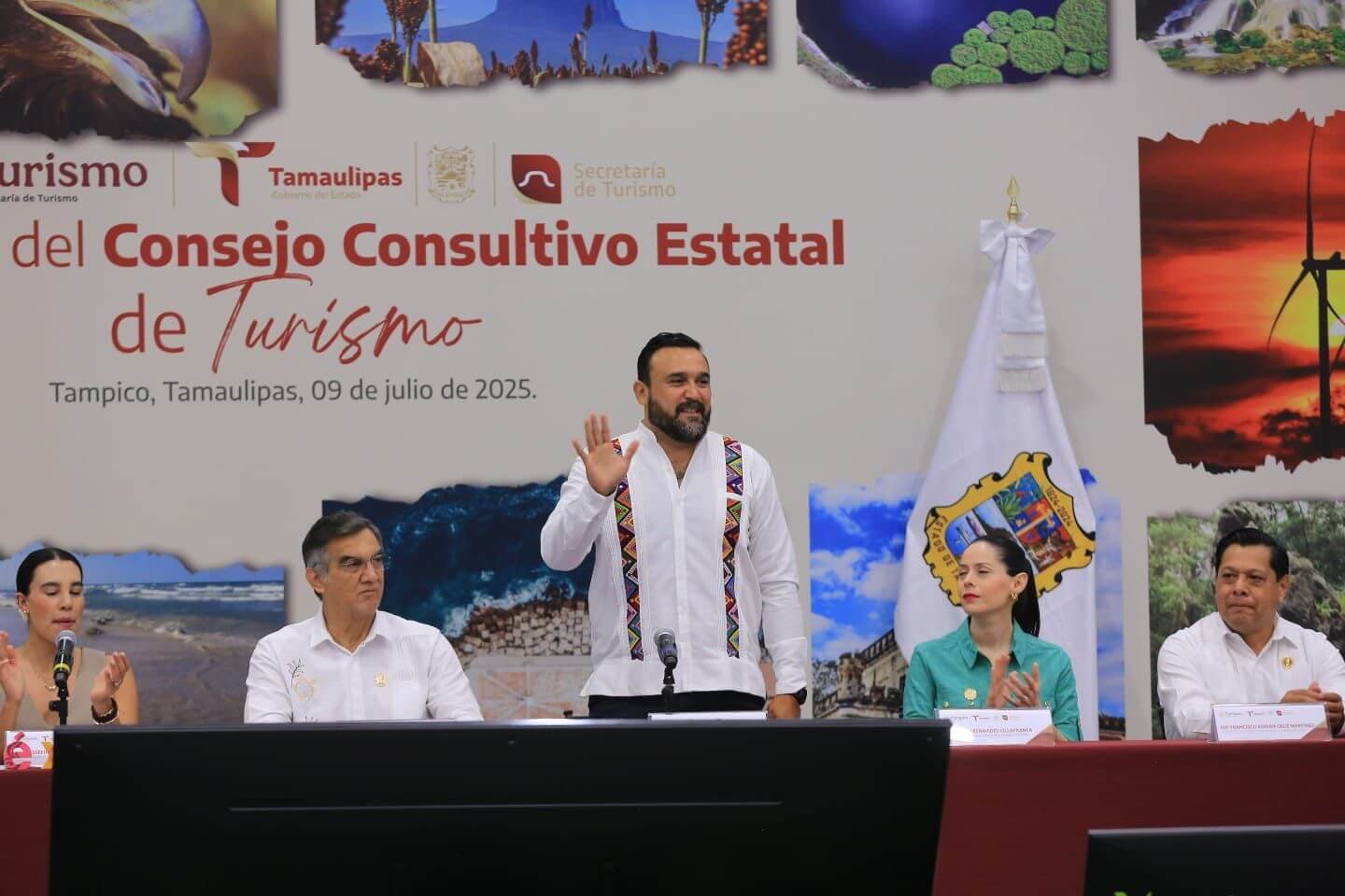 Tampico, Tamaulipas.- El gobernador Américo Villarreal Anaya presidió la instalación del Consejo Consultivo Estatal de Turismo y, ante la presencia de la secretaria Josefina Rodríguez Zamora, reiteró el compromiso para alinear el potencial turístico de Tamaulipas y que las cifras e indicadores sigan mostrando crecimiento y prosperidad.