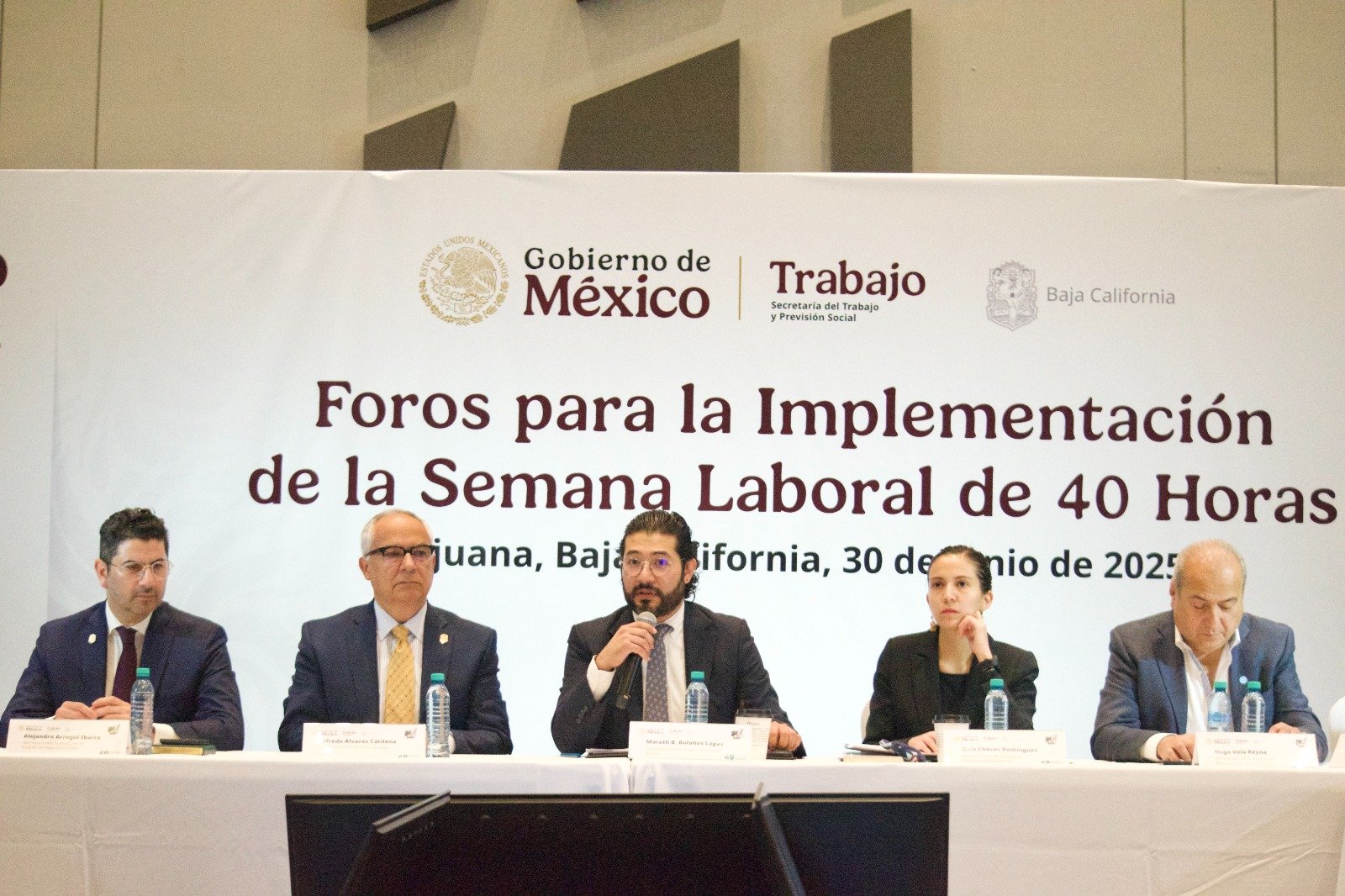 En el marco del cuarto Foro para la Implementación de la Semana Laboral de 40 Horas, celebrado en la ciudad de Tijuana, Baja California, el Secretario del Trabajo y Previsión Social (STPS), Marath Bolaños López, destacó que este cambio es la construcción de un nuevo modelo laboral con bienestar, actualizado al siglo XXI. En el marco del diálogo celebrado para alcanzar esta política pública, llamó a todas y todos los actores del mundo del trabajo a ser parte “de un capítulo inédito de la historia de este país, que es la construcción de un nuevo modelo laboral con bienestar, en donde quepan todas y todos, y que además se actualice con ello hacia el siglo XXI”.