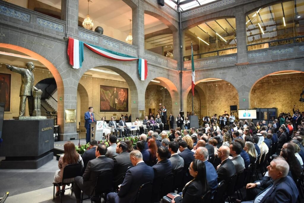 En la antigua Casona de Xicoténcatl, sede anterior del Senado de la República, el senador Noroña expuso los desafíos que el país enfrenta en un escenario internacional complejo, así como su trabajo para promover la unidad del movimiento y los partidos políticos aliados de la cuarta transformación, Morena, PT y PVEM.