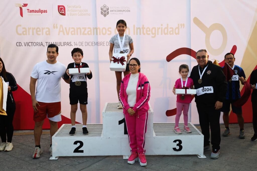 Diciembre 14 de 2025, Ciudad Victoria, Tamaulipas.- En el marco de la Semana Internacional contra la Corrupción, la Secretaría Anticorrupción y Buen Gobierno, a cargo de Norma Angélica Pedraza Melo, celebró con gran éxito la carrera deportiva “Avanzamos con Integridad”. La actividad superó las expectativas y se consolidó como un espacio de convivencia ciudadana en torno a los valores de transparencia y ética pública.