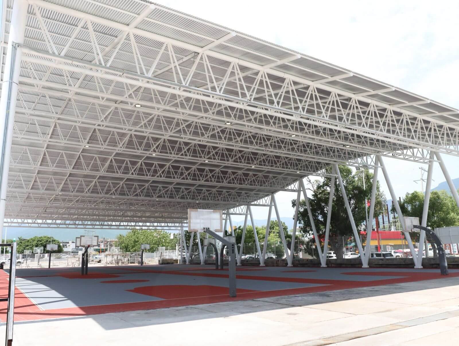En primera instancia, recorrió la Unidad Deportiva Adolfo Ruiz Cortines, donde supervisó los trabajos de construcción de la techumbre en las canchas de basquetbol y la rehabilitación de las canchas de voleibol, acciones que fortalecen la convivencia, brindando espacios dignos para el deporte y la sana recreación de niñas, niños, jóvenes y familias.