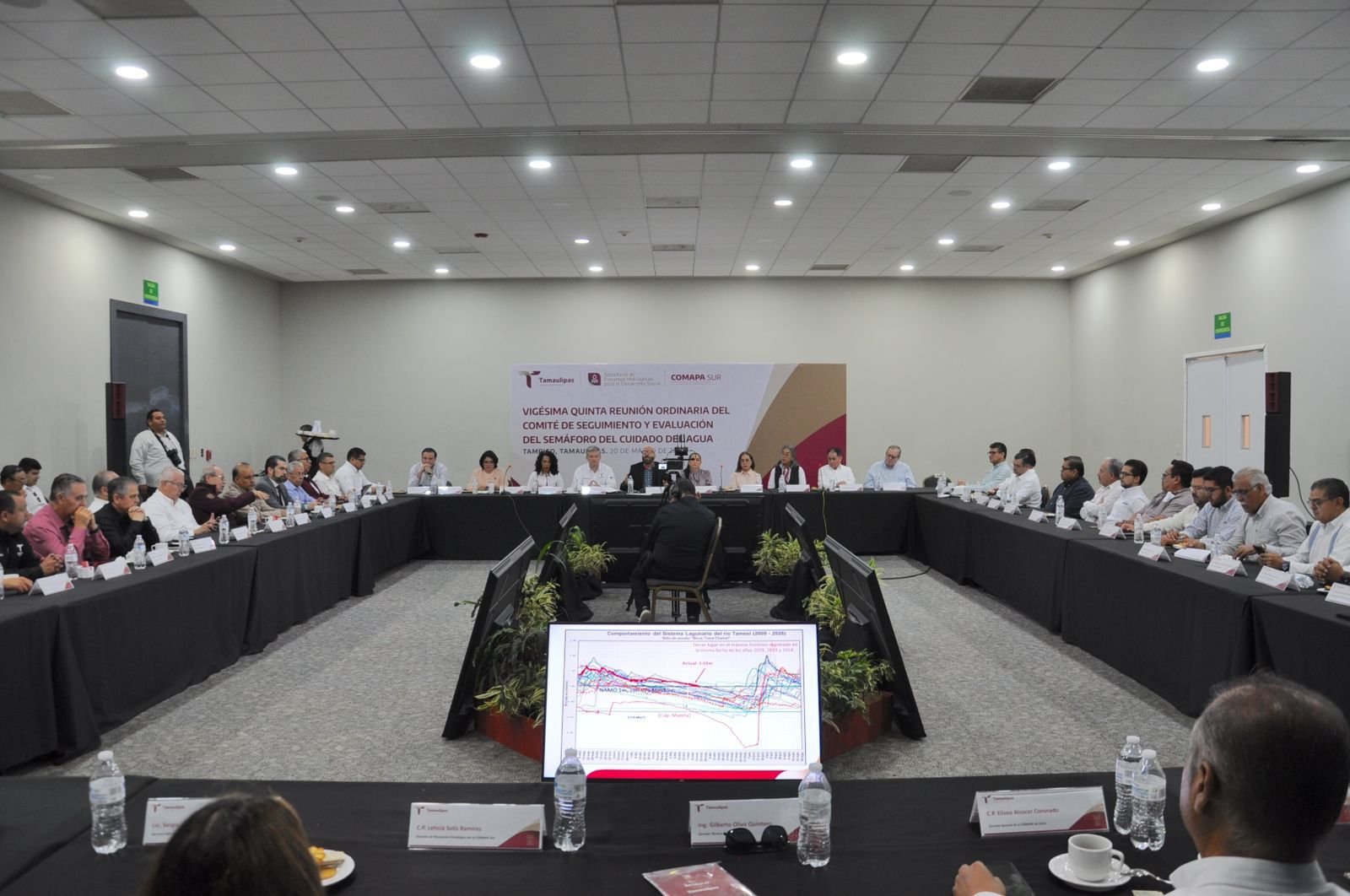 TAMPICO.- El Comité del Semáforo del Agua sesionó de manera mensual para evaluar la disponibilidad del recurso hídrico en Tamaulipas, confirmando que los municipios de Tampico, Ciudad Madero y Altamira permanecen en color verde, lo que refleja condiciones favorables en el suministro.