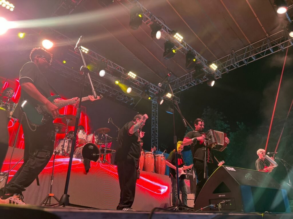 Simultáneamente, en la Plaza Juárez, el ritmo se apoderó de la noche con la presentación de La Ronda Machetera, agrupación nacida de la fusión de La Ronda Bogotá y Pato Machete, que rindió homenaje al inolvidable Celso Piña con un vibrante espectáculo de cumbia y hip hop.