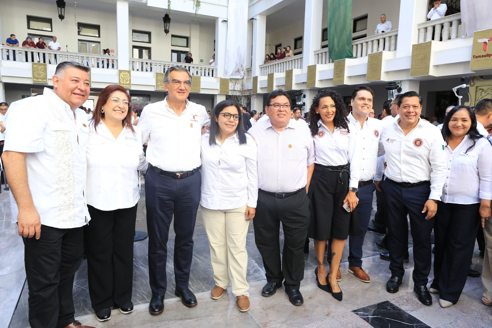 Acompañaron al gobernador en la ceremonia cívica: Humberto Prieto Herrera, presidente de la Junta de Gobierno del Congreso del Estado; Hernán De la Garza Tamez, presidente del Supremo Tribunal de Justicia; Héctor Joel Villegas González, secretario general de Gobierno; Francisco Adrián Cruz Martínez, presidente de la Mesa Directiva del Congreso; el general Enrique García Jaramillo, comandante de la 48 Zona Militar, y el comisario Adolfo Amparán Hernández, coordinador estatal de la Guardia Nacional, además de funcionarios del gabinete estatal, integrantes de la Mesa de Seguridad, diputadas y diputados locales y trabajadores del Gobierno del Estado.