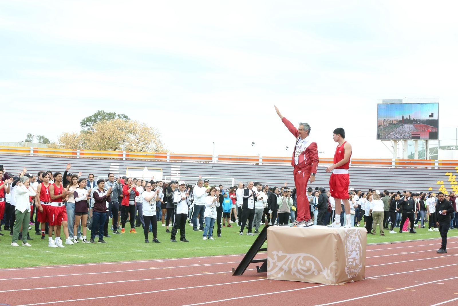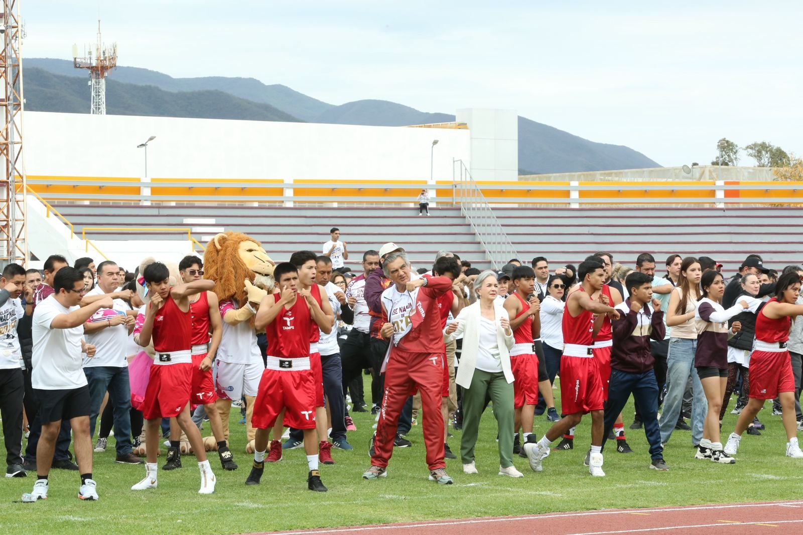 Desde el emblemático estadio Marte R. Gómez, en la capital del estado, el gobernador estuvo al frente de miles de tamaulipecos y tamaulipecas que, desde las plazas públicas del estado, se sumaron simultáneamente mediante la activación física y la promoción del deporte para respaldar la campaña nacional.