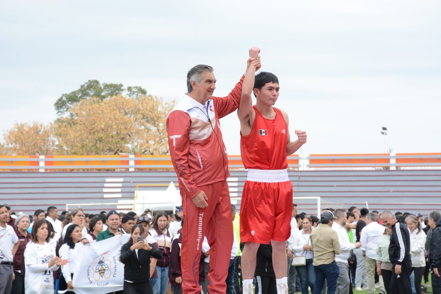Ciudad Victoria, Tamaulipas. – Tamaulipas se sumó con éxito a la Clase Nacional de Boxeo “Por la paz y contra las adicciones”, con una participación multitudinaria encabezada por el gobernador Américo Villarreal Anaya y la presidenta del DIF Estatal, María de Villarreal, siguiendo en todo momento el evento presidido por la presidenta Claudia Sheinbaum, en el Zócalo de la Ciudad de México.