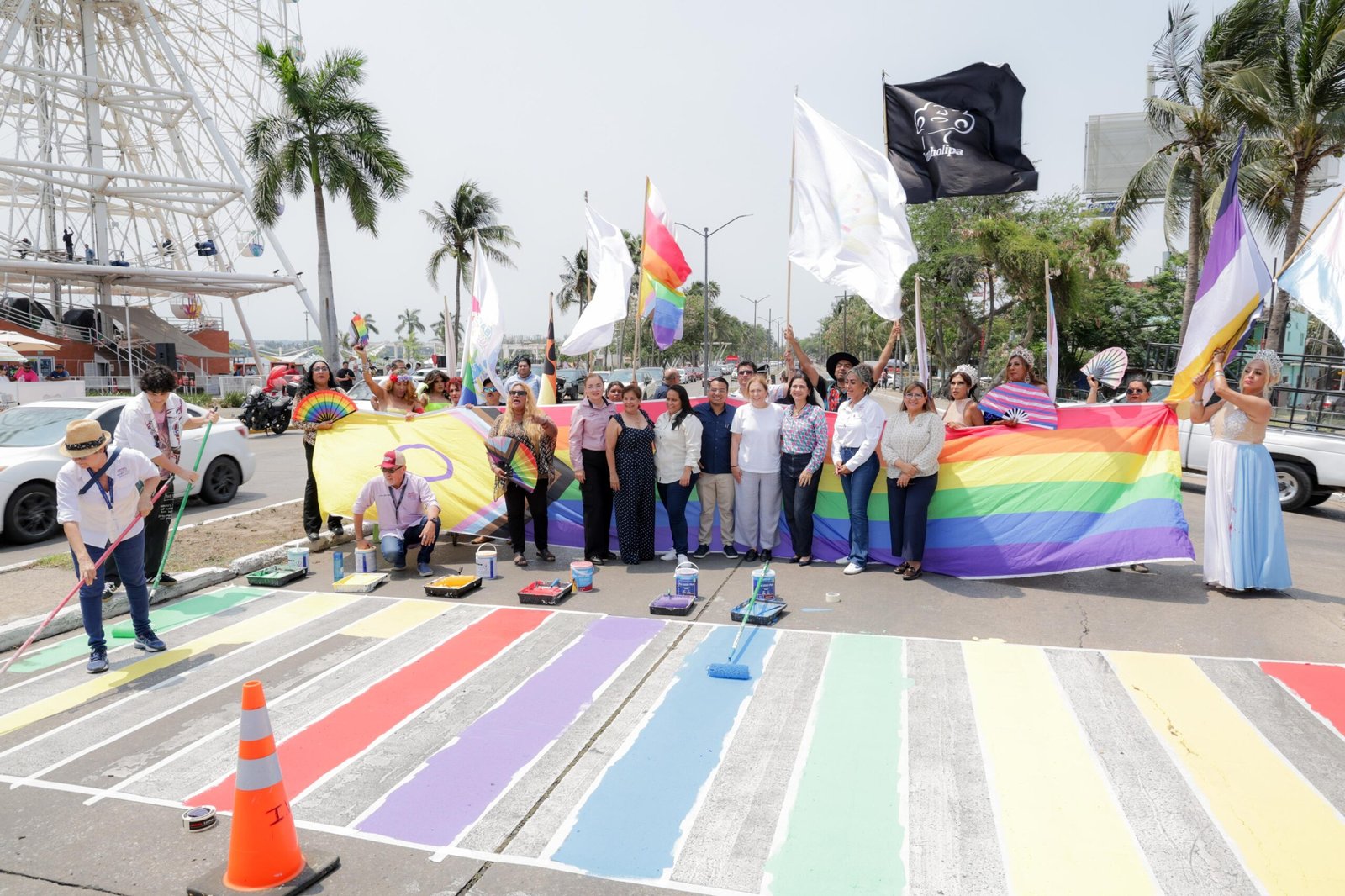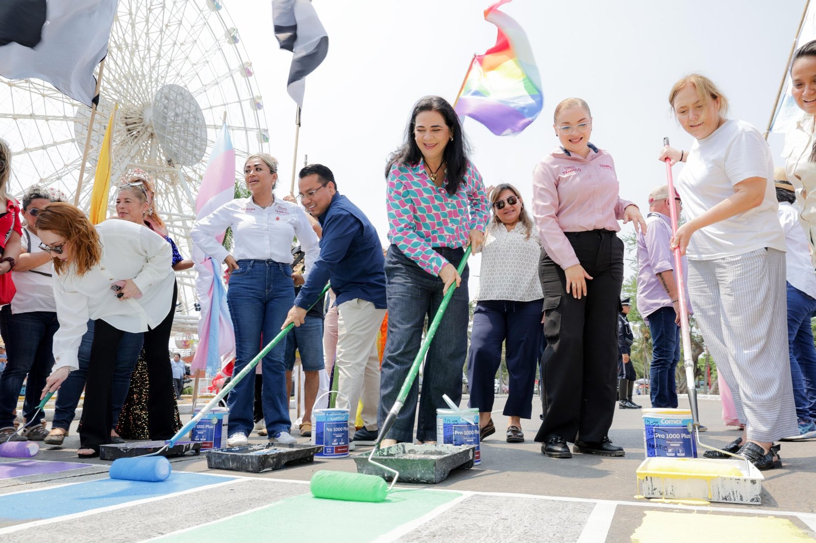 Con orgullo y compromiso, el Gobierno Municipal de Tampico, encabezado por la alcaldesa Mónica Villarreal Anaya, llevó a cabo a través de la Secretaría de Cultura, la pinta del cruce peatonal en Bulevard Fidel Velázquez frente a la Rueda de la Fortuna, en un acto simbólico de inclusión, respeto y visibilidad para la comunidad LGBTIQ+.