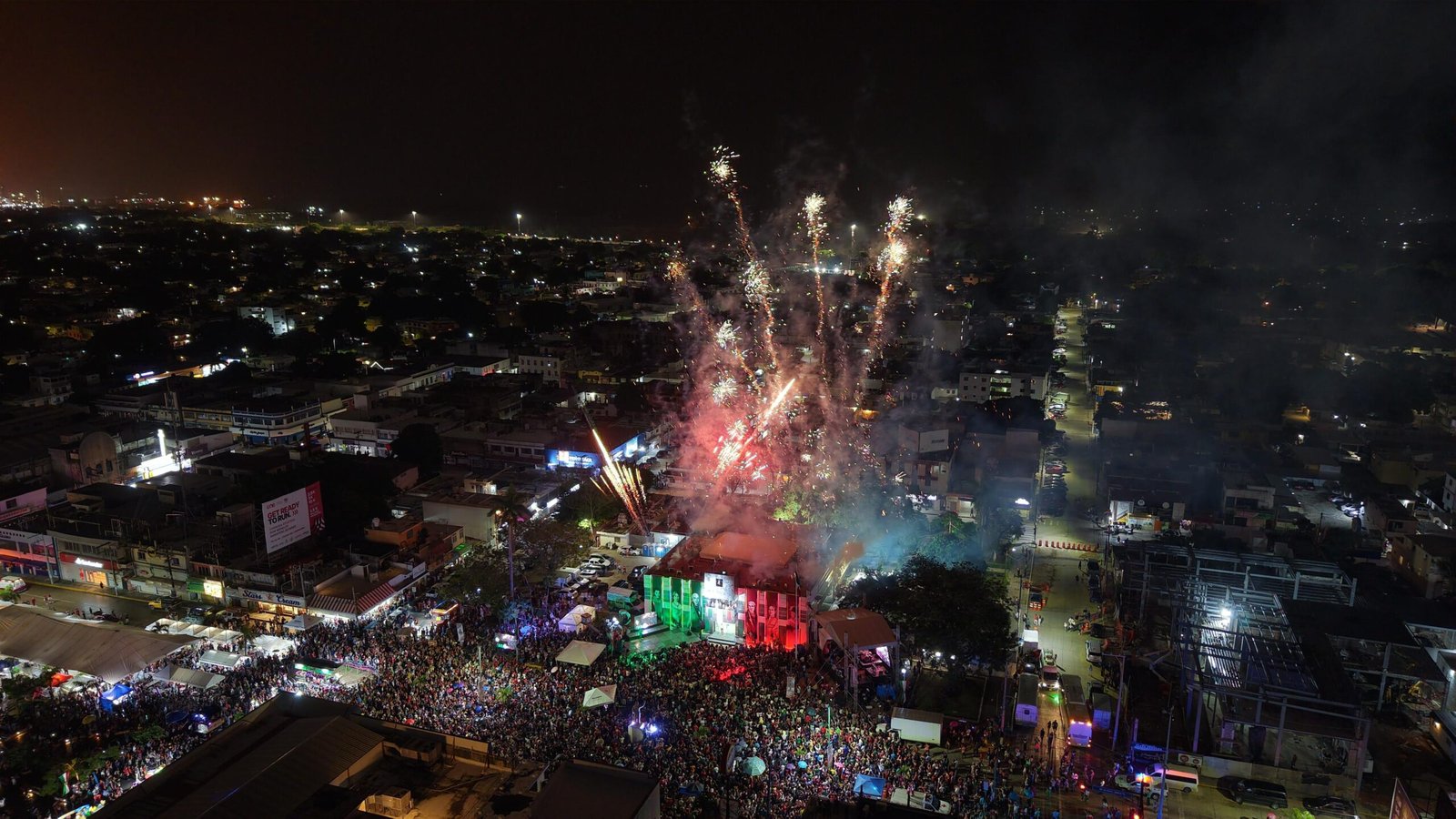 Tras la última campanada, la multitud entonó a una sola voz, los acordes del Himno Nacional Mexicano, mientras el cielo de Ciudad Madero se iluminaba de una espectacular pirotecnia, cargada de luz, color y esperanza.