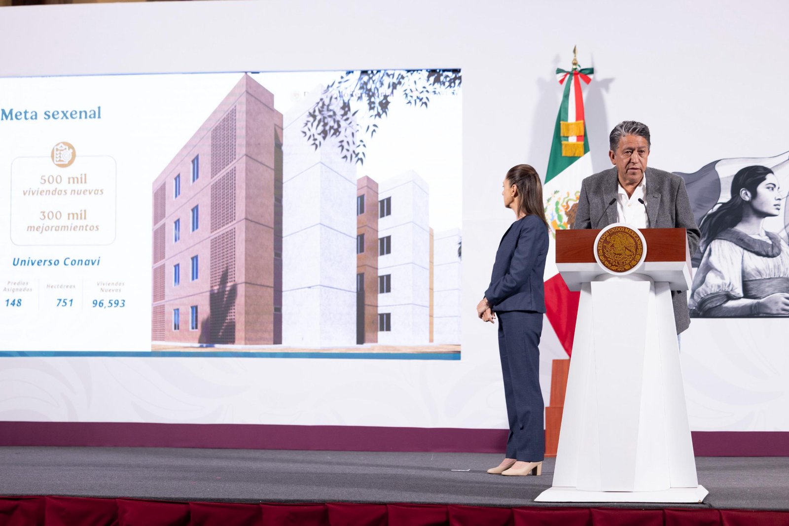 - Para el sexenio serán 500 mil viviendas nuevas y 300 mejoramientos, ya se está trabajando en 148 predios que suman 751 hectáreas para una proyección de 96 mil 593 viviendas nuevas.